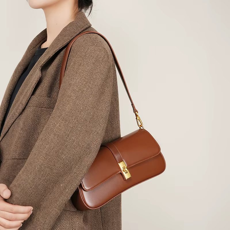 - مقابض ذهبية متينة تضيف لمسة فاخرة وتسمح بحمل الشنطة براحة وأناقة طوال اليوم.