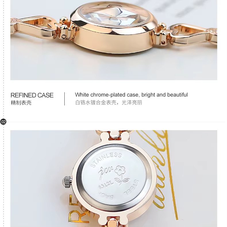 - لمعان حجر الراين يضفي أناقة فريدة ويجعل الساعة قطعة مثالية لإطلالات متنوعة