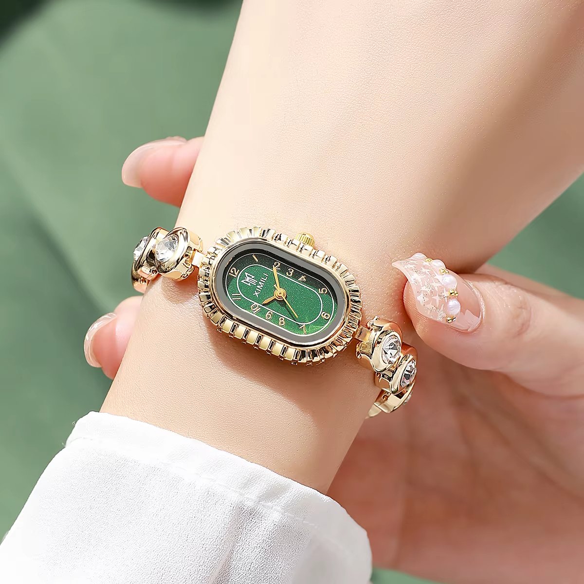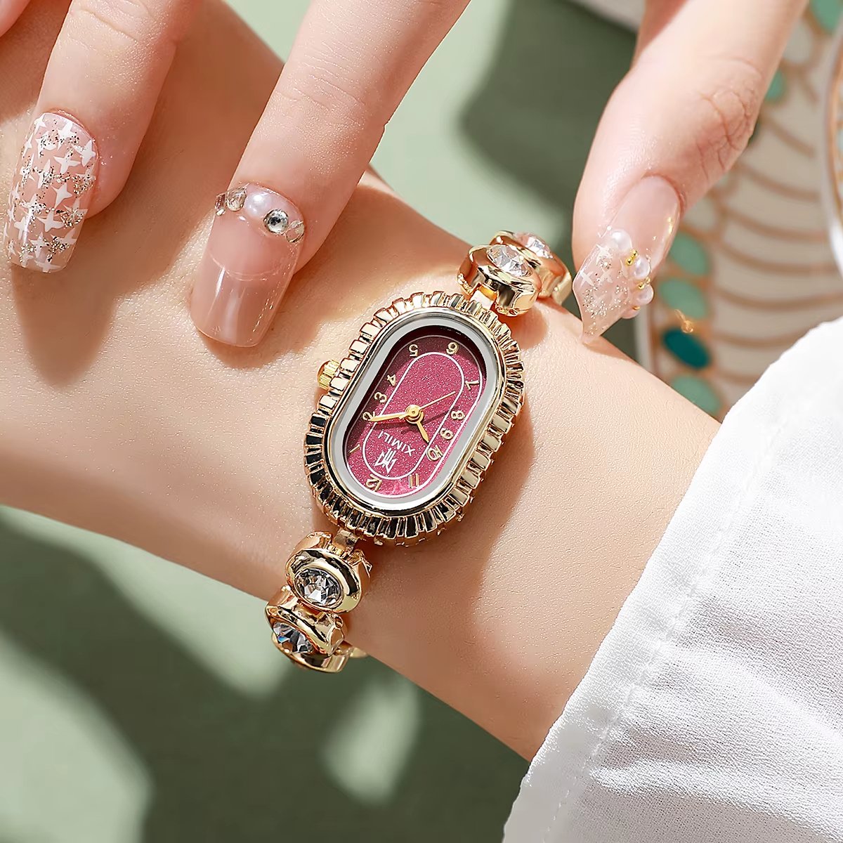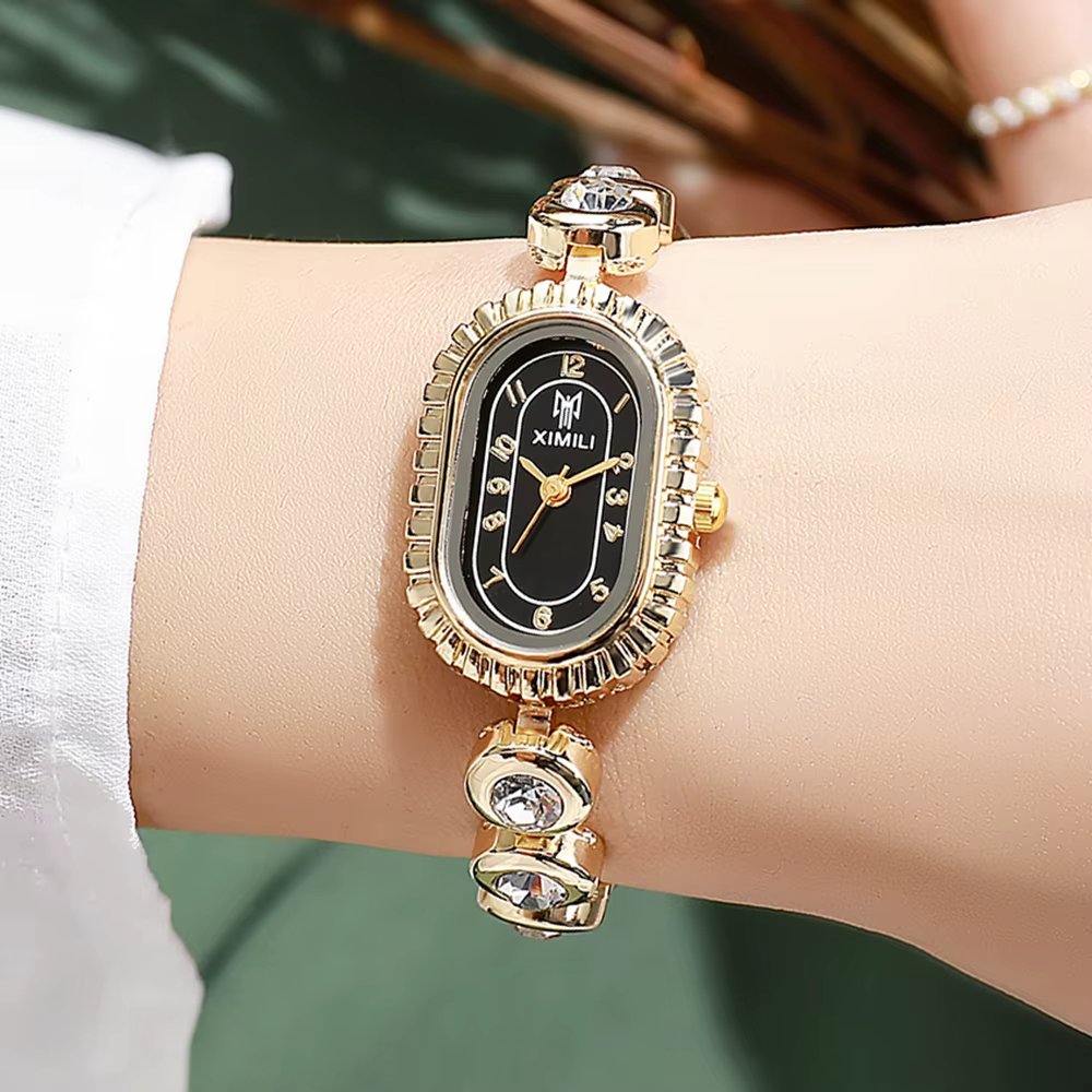 ساعات نسائية عصرية جديدة، ساعة يد كاجوال للسيدات، ساعة كوارتز، ساعة نسائية بيضاوية مرصعة بالأحجار الكريمة، ساعة نسائية ريلوجيو فيمينينو