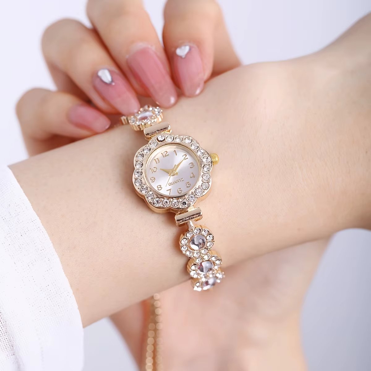 ساعات نسائيه فخمه فاخرة وعصرية تضيف لمعصمك لمسة أنثوية راقية مع تصميم مميز مرصع بحجر الراين وسوار مريح وخفيف الوزن، دقة عالية في عرض الوقت ومتانة ممتازة تجعلها مثالية للاستخدام اليومي والمناسبات الخاصة مع لمسة براقة تعكس أناقة لافتة.