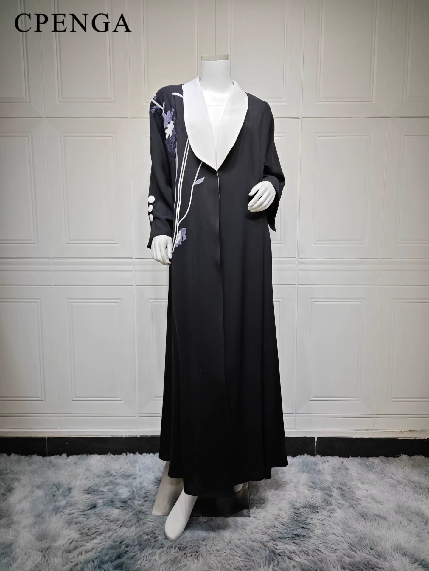 عباءة تركية فاخرة وعصرية سوداء مطرزة