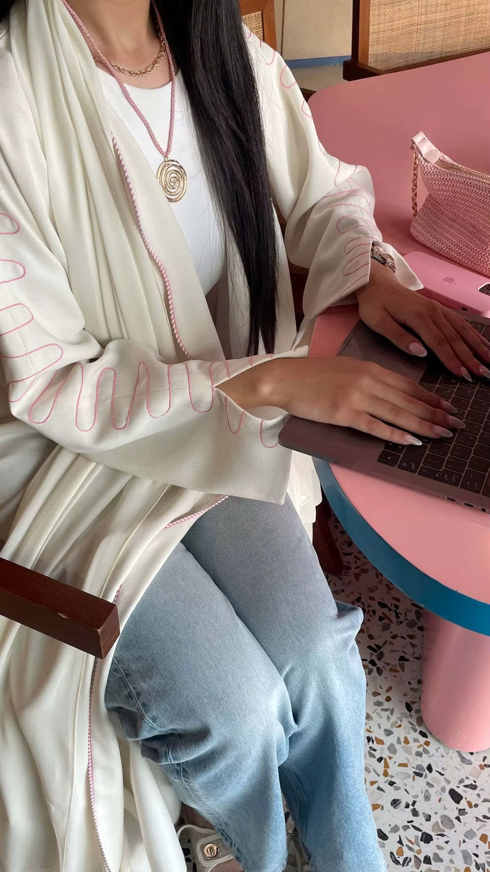 - العباءة مصممة بشكل يحافظ على أناقة الطلة طوال اليوم دون تجعد