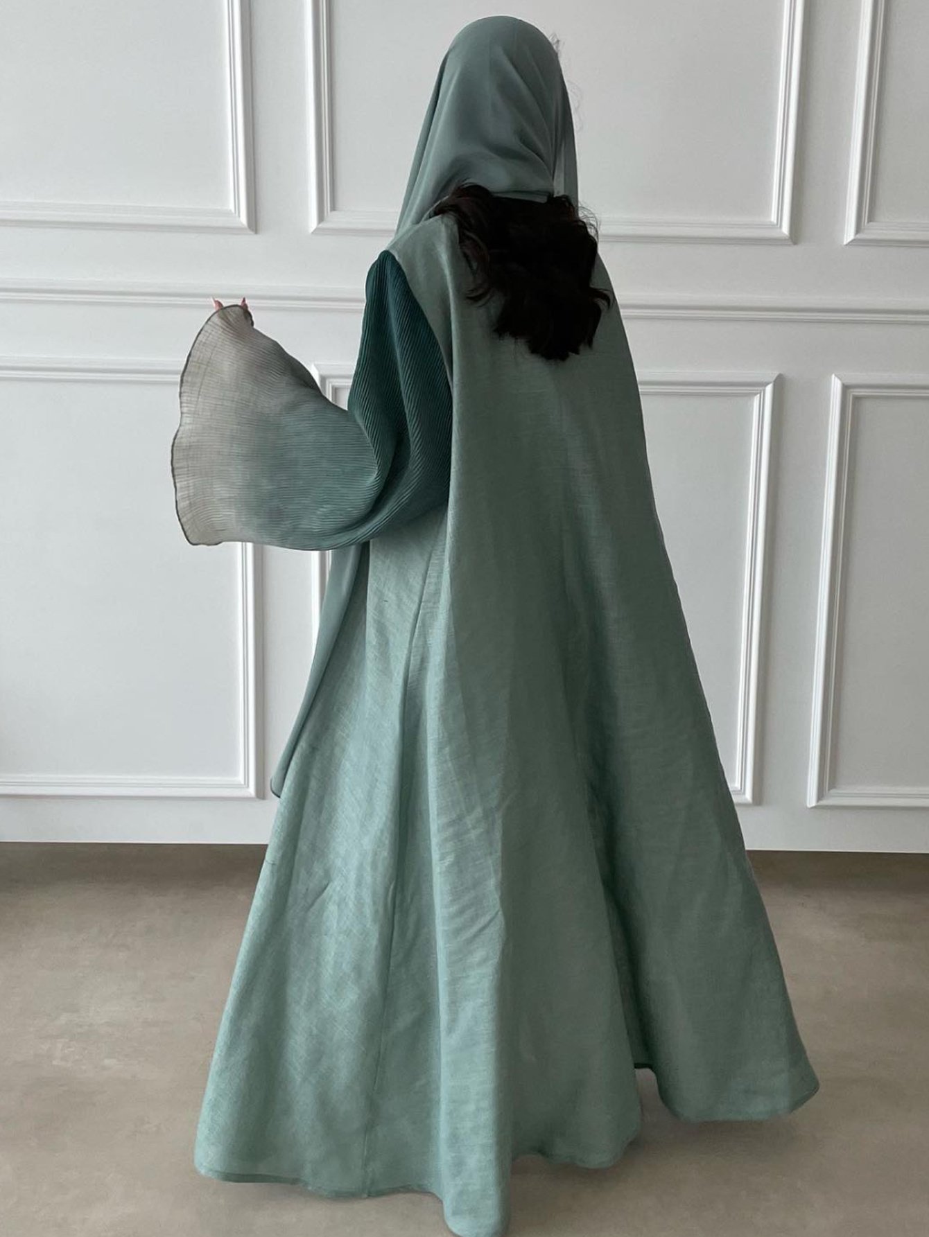 - أكمام كاملة تحافظ على الأناقة وتوفر الحشمة المطلوبة مع الراحة القصوى للارتداء.